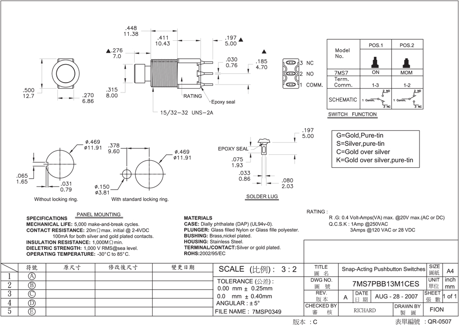 7M按鍵開關(guān)產(chǎn)品參數(shù)圖